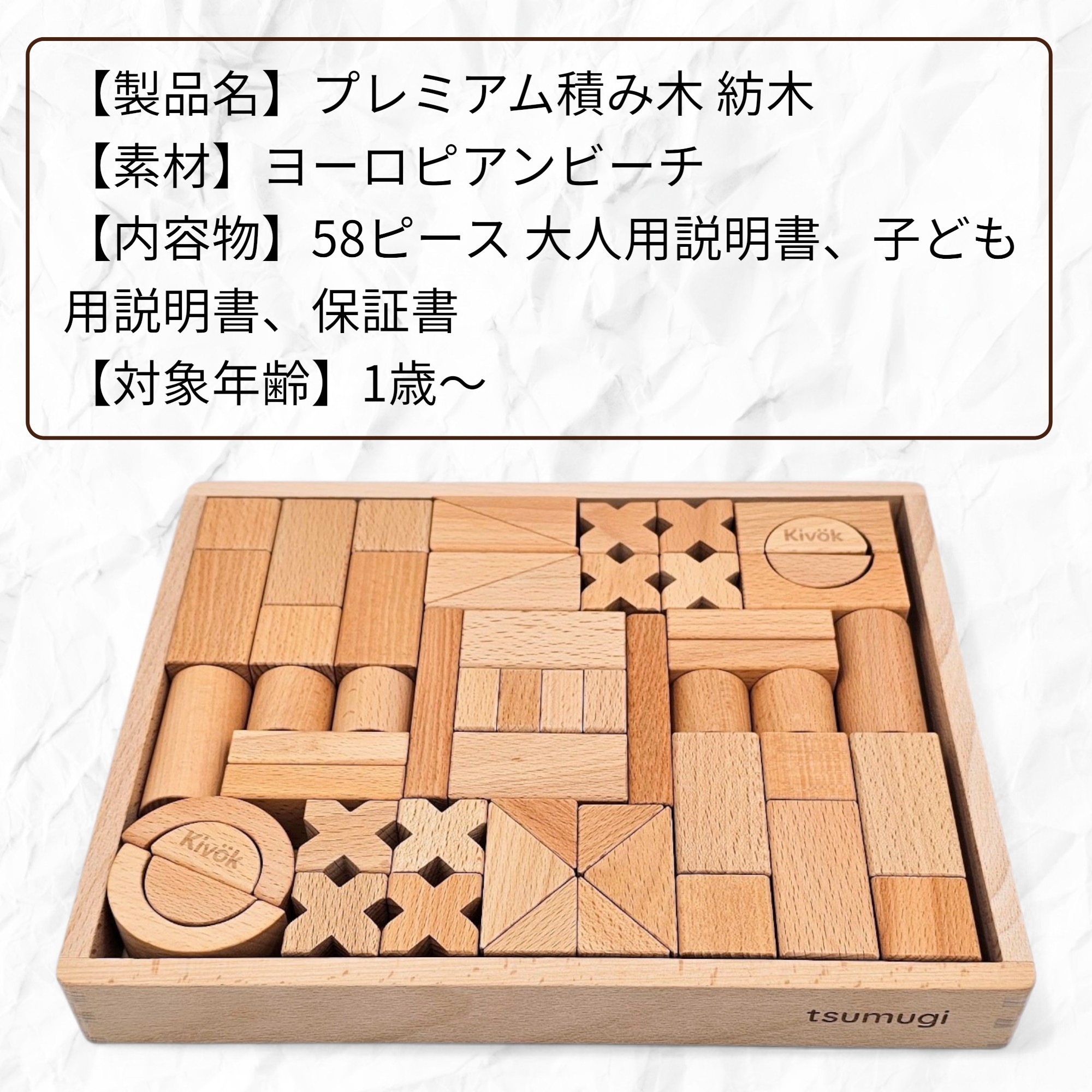 医薬品や食品、高級弦楽器の仕上げなどに利用される天然ワックスの女王”カルナウバワックス”で仕上げています。お子さまが舐めても安心なだけでなく、積み木を汚れや乾燥から守ります。